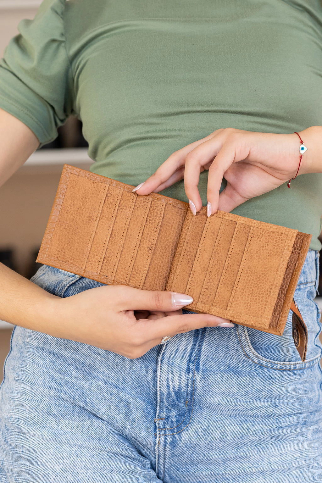 Para la confección de los productos se utilizan cueros seleccionados de alta calidad. Al ser únicos y naturales, pueden presentar alteraciones en el tono, marcas o pliegues. Lejos de considerarse como imperfecciones son manifestaciones esenciales, propias del material.