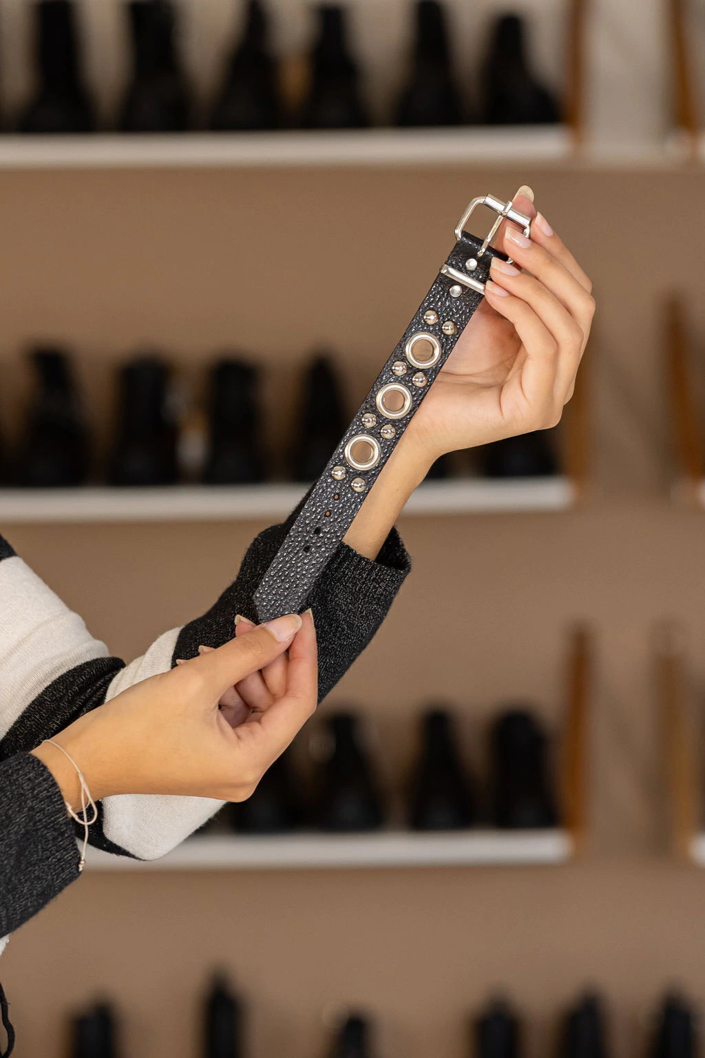 • Detalles: Apliques ojalillos y media esfera. Cierre con hebilla