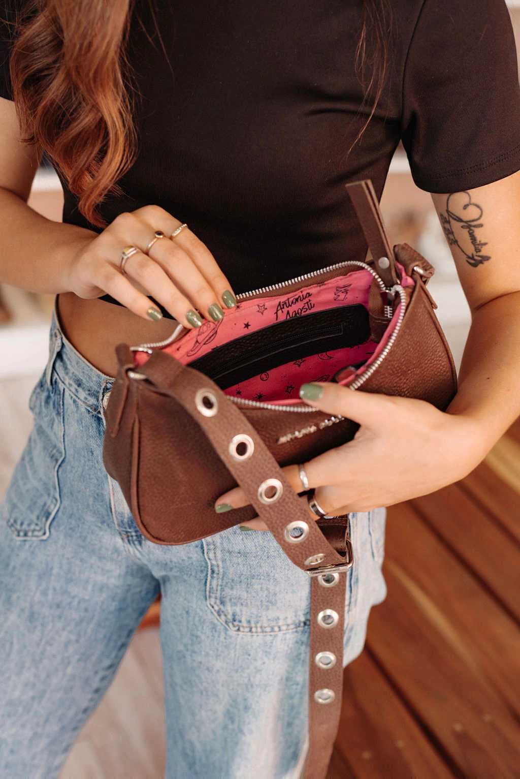 Para la confección de los productos se utilizan cueros seleccionados de alta calidad. Al ser únicos y naturales, pueden presentar alteraciones en el tono, marcas o pliegues. Lejos de considerarse como imperfecciones son manifestaciones esenciales, propias del material.